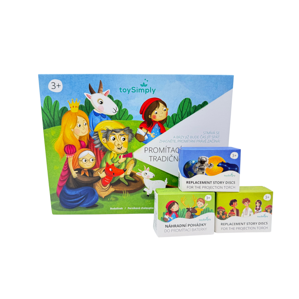 Doplňte baterku o další sady promítacích kotoučků – každá přináší nové příběhy a ilustrace. Děti si tak mohou rozšiřovat svou pohádkovou sbírku a znovu a znovu objevovat svět fantazie.