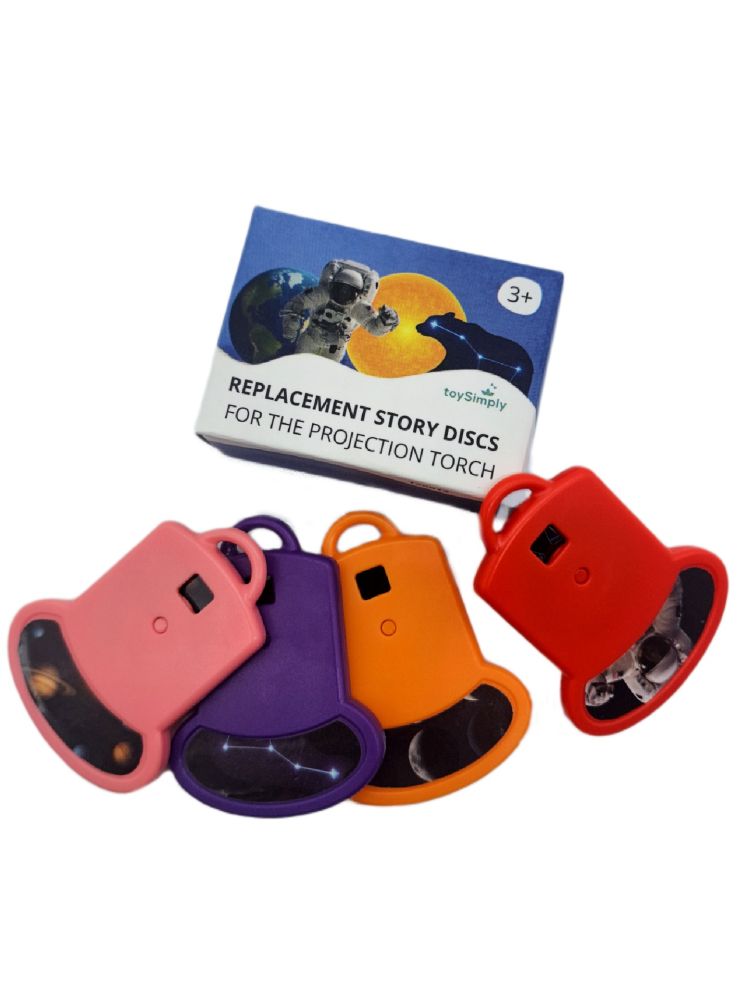 Disketky „Příběhy z vesmíru“ od Toysimply jsou ideálním doplňkem k promítací baterce Toysimply a umožňují dětem poznávat vesmír zábavnou, vizuálně atraktivní a edukativní formou každý večer.