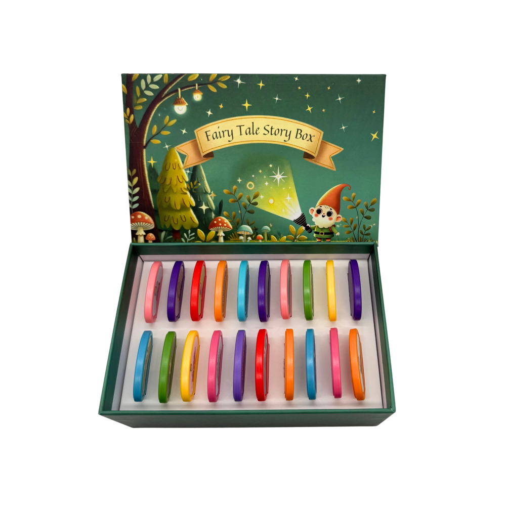 Uspořádejte svou sbírku pohádkových disketek s naší jedinečnou krabičkou na pohádky a příběhy – nezbytný doplněk pro každého malého milovníka příběhů a dobrodružství.